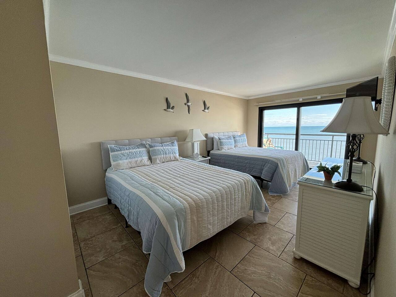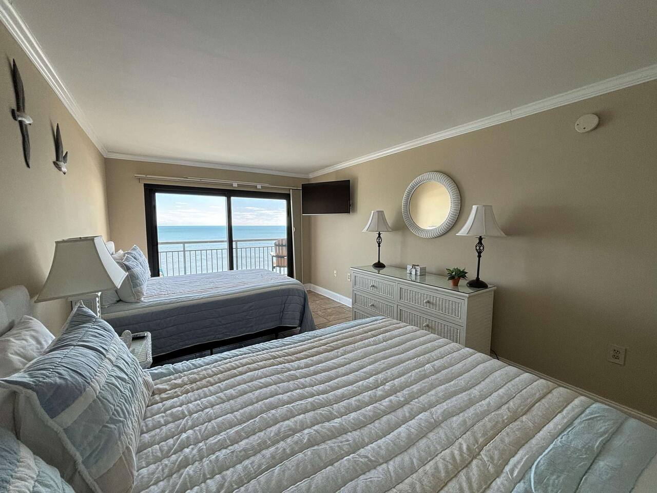 🛋 The Space • Master Bedroom: 2 queen beds + ensuite bathroom • Second Bedroom: 1 twin bed • Living Room • Full kitchen stocked with cookware & utensils • Private oceanfront balcony with breathtaking views • High-speed WiFi & flat-screen TVs • Central A/C • Hairdryers in both bathrooms 🏖 Resort Amenities • Indoor & outdoor pools + hot tubs • Lazy river & kiddie pool • Fitness center • On-site restaurant & seasonal beach bar • Direct beach access 📍 Location Highlights • Just minutes from Myrtle Beach Boardwalk & SkyWheel • Close to Broadway at the Beach, dining, shopping & entertainment • Surrounded by golf courses & family attractions