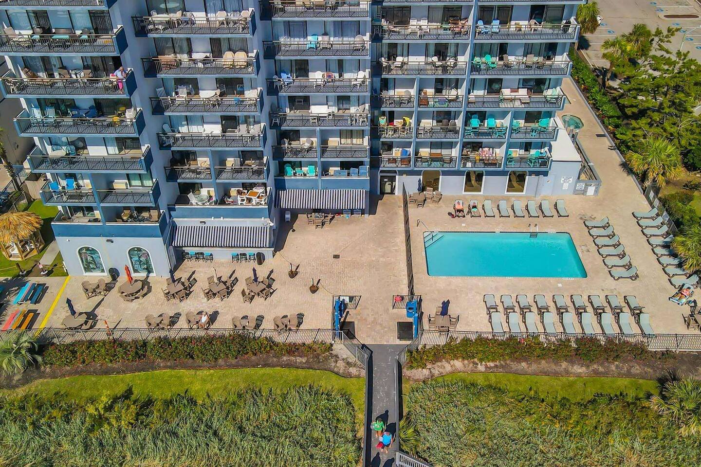🏖 Resort Amenities • Indoor & outdoor pools + hot tubs • Lazy river & kiddie pool • Fitness center • On-site restaurant & seasonal beach bar • Direct beach access Indoor/Outdoor Pool Column Project UPDATE: The progress on the project is going well. As of now, the indoor/outdoor pool is estimated to reopen sometime in December 2025.