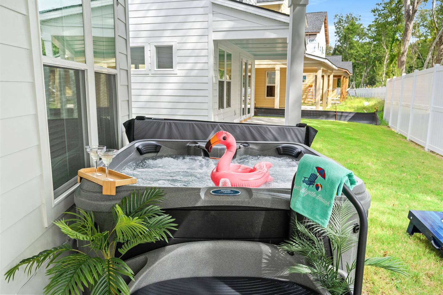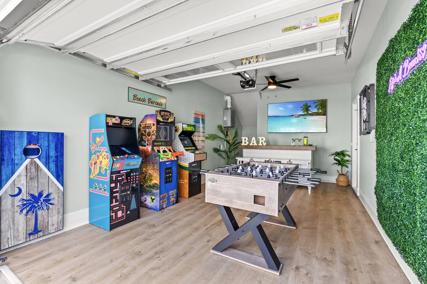 Escape to this spacious 4BR North Myrtle Beach home for up to 10 guests. Enjoy a private hot tub, covered patio, and a garage arcade with classic games. Perfect for families and groups, this modern coastal retreat is just minutes from Cherry Grove Beach, restaurants, shopping, and attractions. Relax and recharge or play and explore—this home offers the ideal blend of comfort and fun for your North Myrtle Beach getaway.