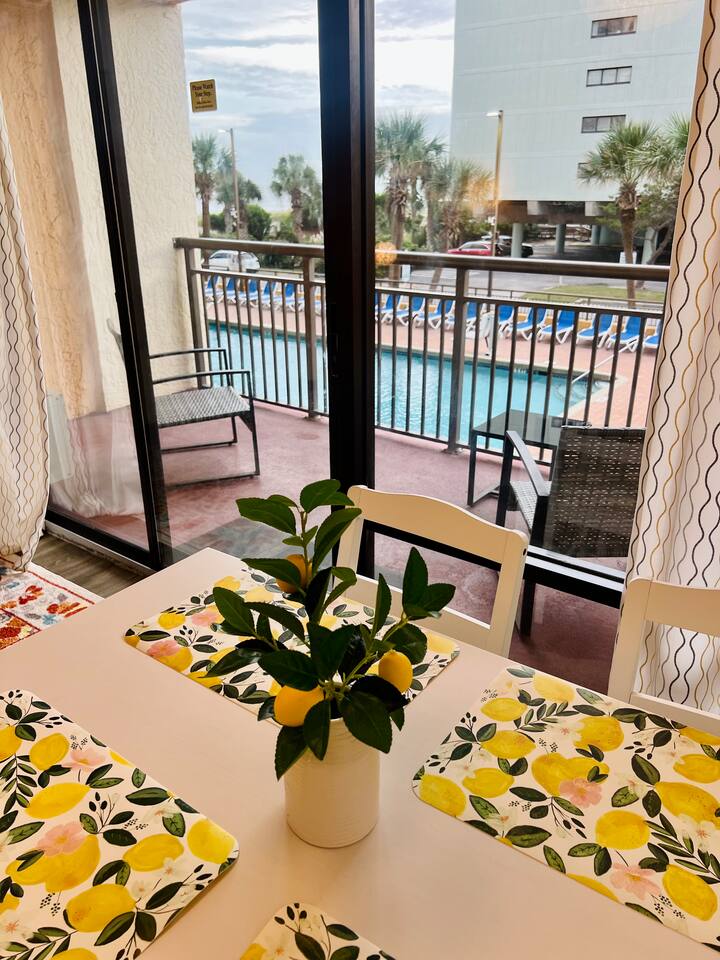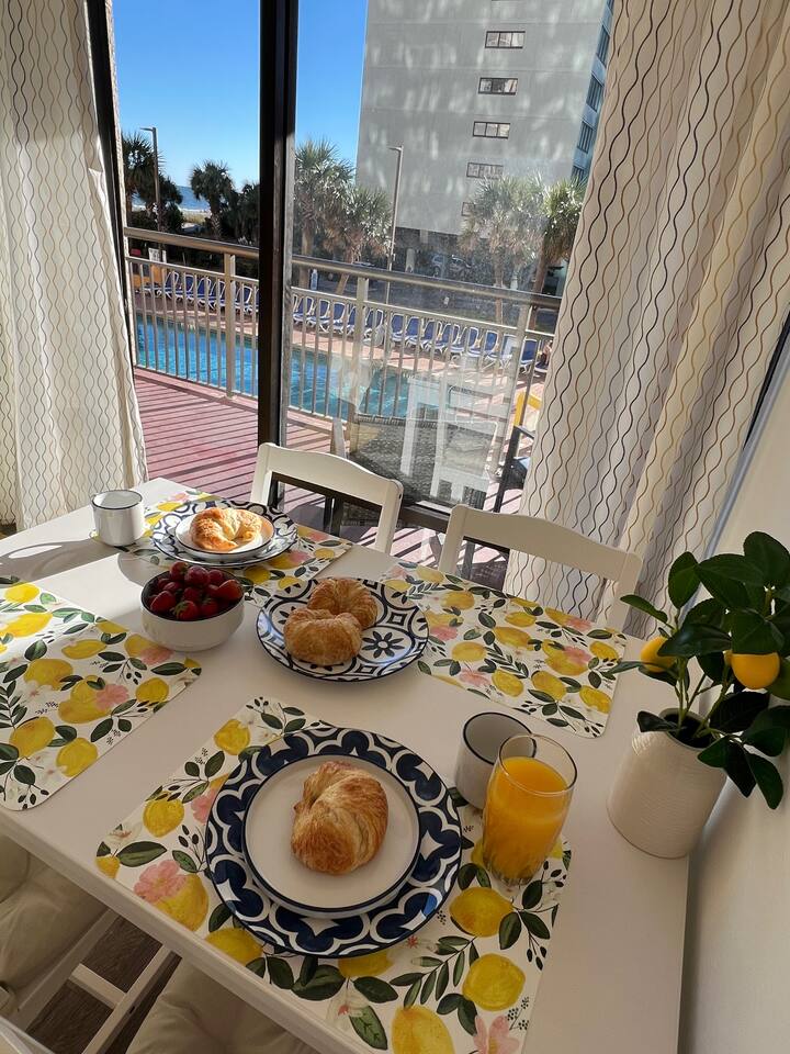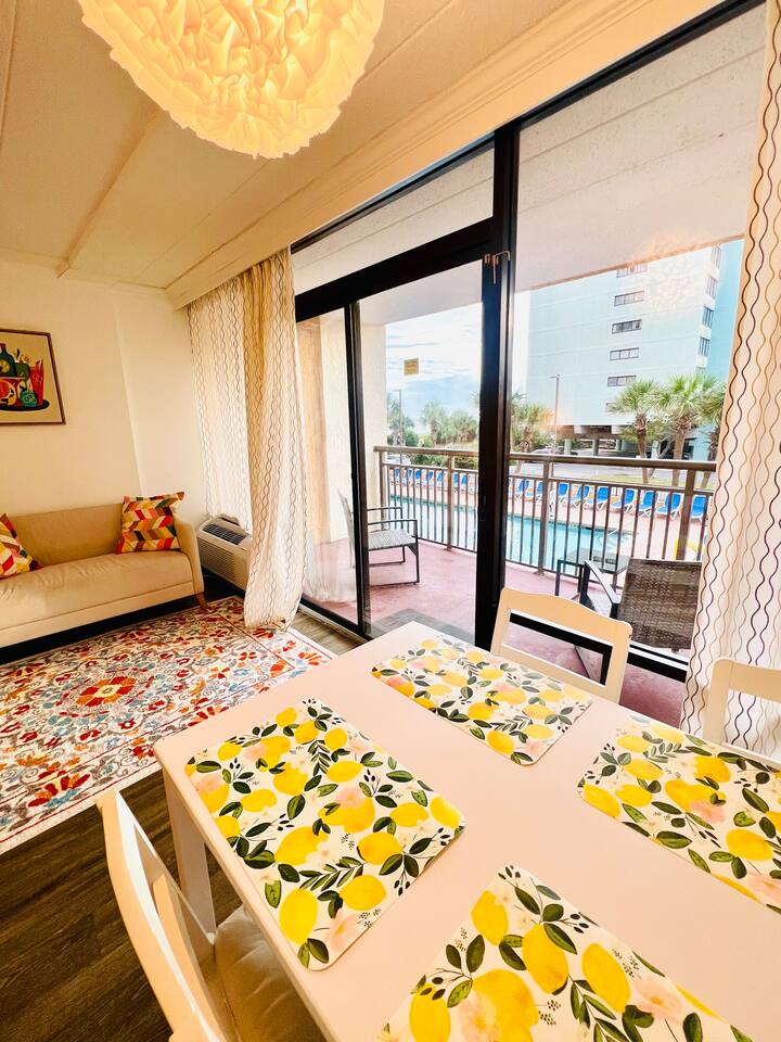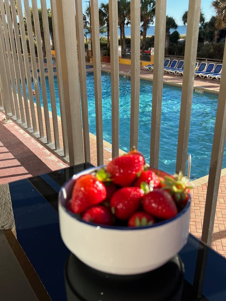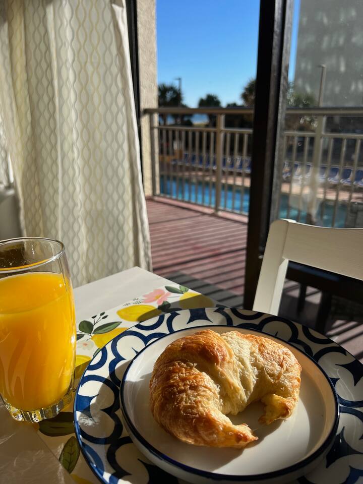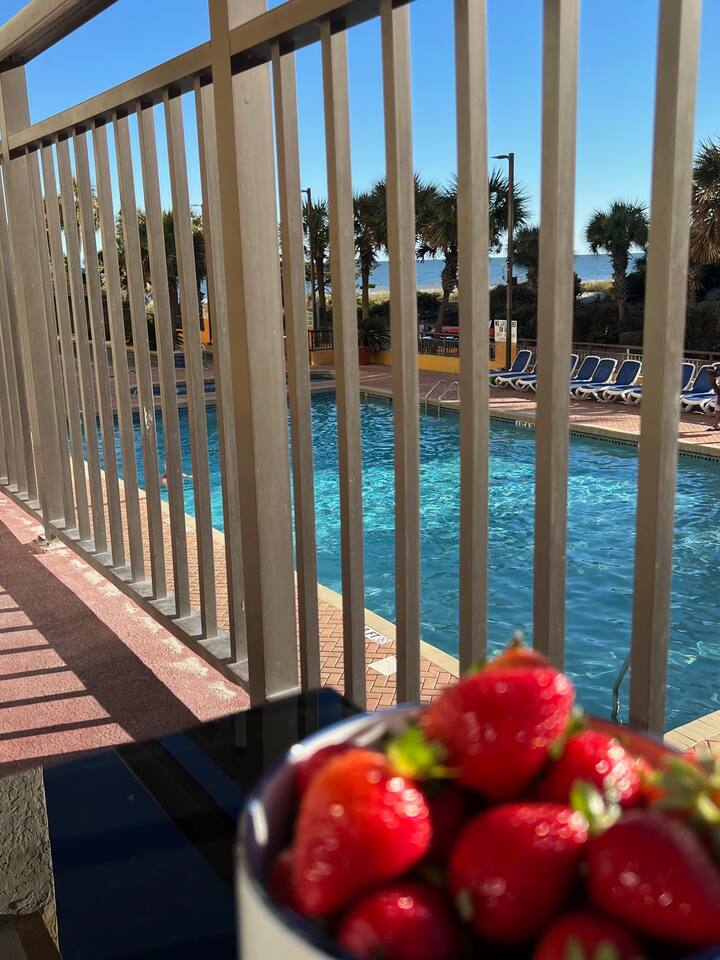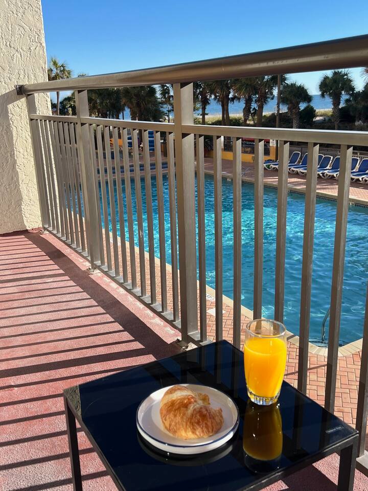 π Resort Amenities β’ Outdoor pool and sun deck β’ Fitness center β’ Onsite laundry room β’ Just steps to the beach (Note: Guests do not have access to the onsite bar or restaurant.)