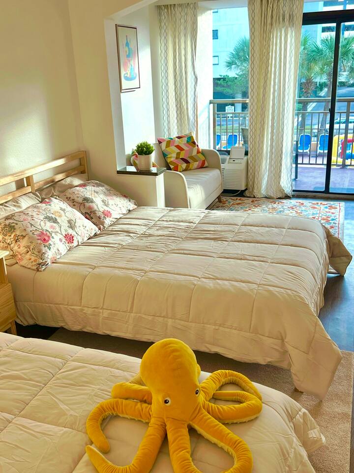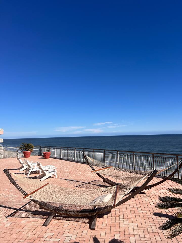 π Oceanfront Comfort Relax in a bright and airy condo with a private balcony, ocean views, and everything you need for a stress-free stay. π Interior Features β’ Open living space with flat-screen TV β’ Kitchenette with standard appliances, cookware, and utensils β’ Complimentary Wi-Fi β’ Fresh linens and towels provided. β’ Starter toiletries.