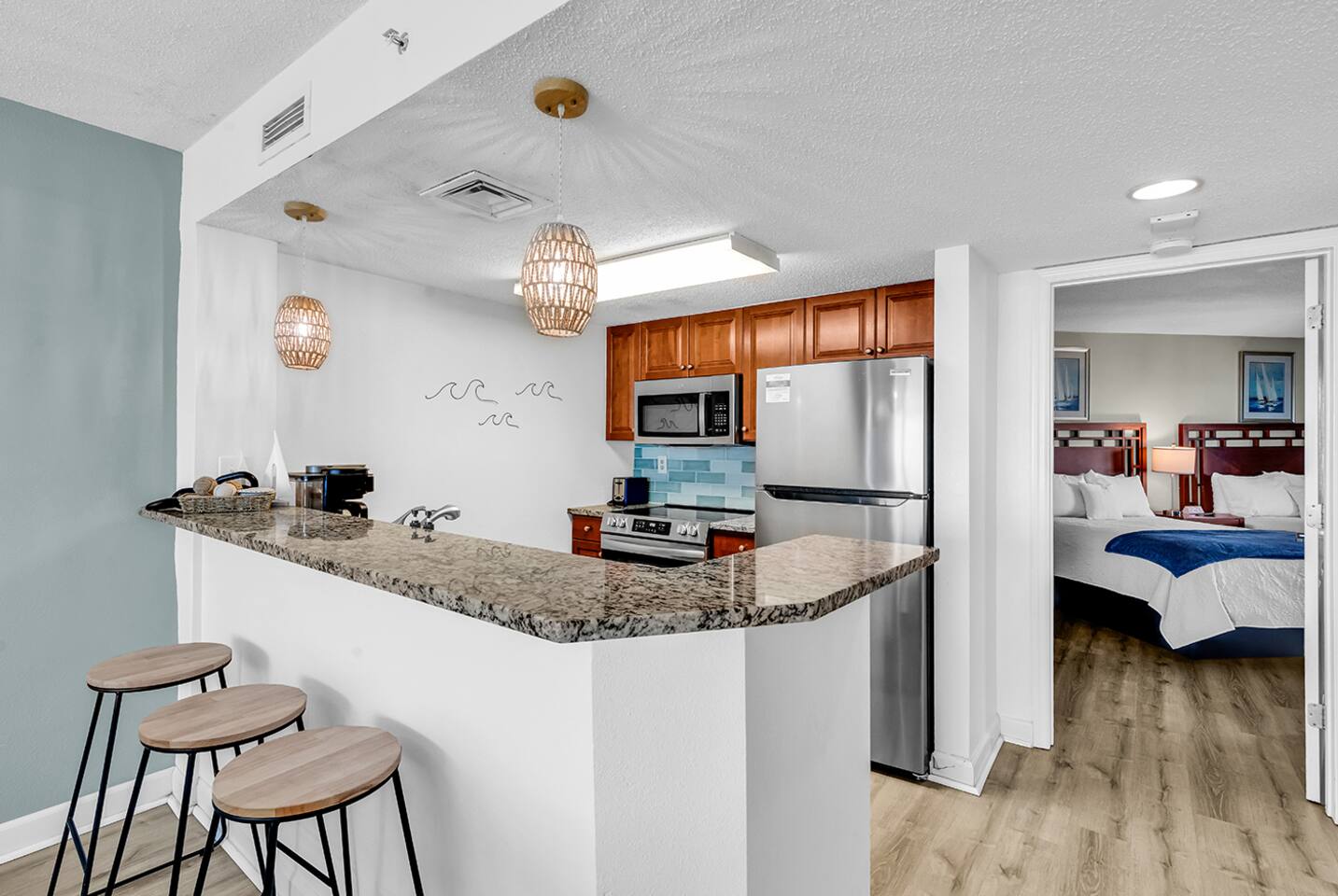 - Year-round access to the 30,000 square foot indoor waterpark including: waterslides, lazy rivers, pools, hot tubs, and children play areas. - Ocean and beach access, outdoor pools, lazy rivers, children's splash pad and play area, beach volleyball court. - On-site restaurants Captain's Cafe, the Admiral's room, Cabana Tiki Bar, and Perks up Coffee Shop serving Starbucks coffee. - On-site mini golf, game room, tennis courts, and basketball courts. - On-site massages located at the Lost in Serenity Spa. - Free guest parking in the garage across the street from the resort. - Amazing Water Amenities We are the home of Myrtle Beach's Best Indoor Waterpark! Enjoy all the fun without leaving the resort with so much to do you won't know where to start. Swim laps in the pool or play in the teen pool. Let the kids take a deep sea adventure in our Silly Submarine. Relax in one of the 3 whirlpools. Pick up the pace on our speed slide or wild winding slide. The water Parks are Heated and fully enclosed from November 22nd-April 30th. Keyless self-check-in for a seamless, hassle-free arrival. You’ll enjoy private, secure access to the property through our keypad smart lock. Your unique entry code will be sent before check-in, allowing you to arrive anytime after 4 PM without needing to meet anyone or pick up keys. Enjoy full access to the home, including the living area, kitchen, bedrooms, bathrooms, and private balcony. Parking information and building access instructions will also be provided prior to your arrival for a smooth check-in experience.