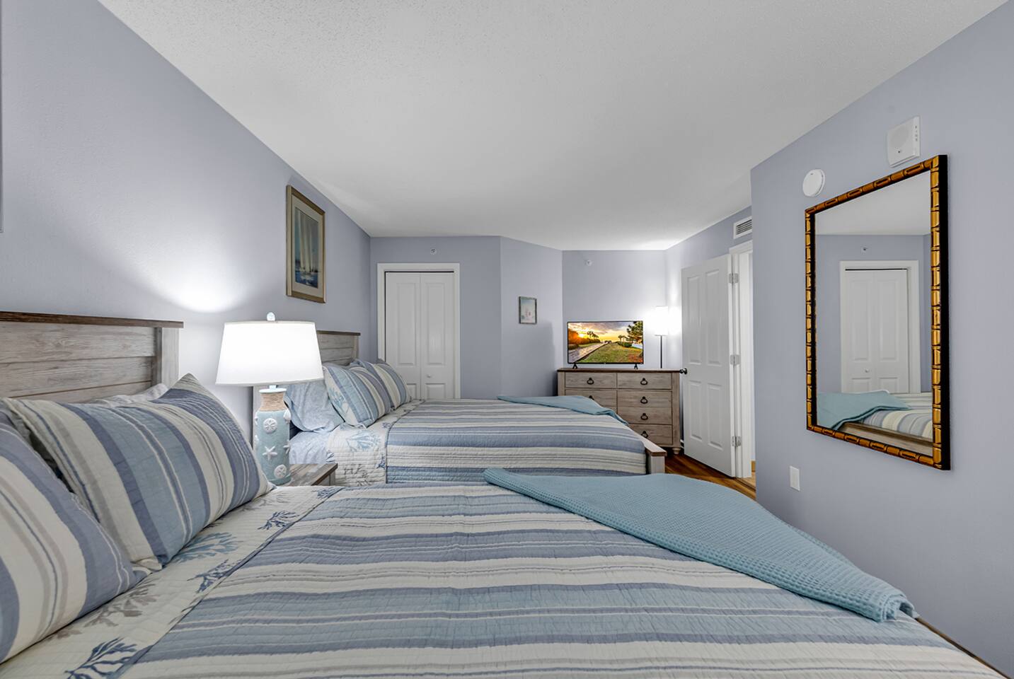 Renovated in March 2024 Master Bedroom: - King bed - Balcony with ocean views - Private bathroom - Jacuzzi tub - Smart TV with Roku Guest Mode - Dresser, Nightstands, Luggage Rack - Iron and Ironing Board Guest Bedroom: - 2 Queen beds - Smart TV with Roku Guest Mode - Dresser, Nightstand, Luggage Rack Living Room and Dining Area: - Floor to ceiling windows with ocean view and balcony. - Smart TV with Nintendo gaming system and Roku Guest Mode - Comfortable couches and space to relax - Dining area with ocean view. - Sofa bed with sheets available upon request Kitchen: - Fully equipped with cooking utensils and kitchen essentials - Refrigerator & Freezer - Dishwasher - Keurig coffee maker: Drip coffee and K-cups. - Pots & Pans - Food Storage General Property Information: - Free in unit washer and dryer for Laundry. - Wifi provided through the resort and access to your streaming services. - Pack n Play is available - please bring your own sheets/covers for use. - All Roku Smart TVs are on Guest Mode so you can log in and enjoy all your streaming services with ease. - Condo is located in the South-Palms Tower of the resort. - No smoking in the property or on the balcony. - No pets allowed.