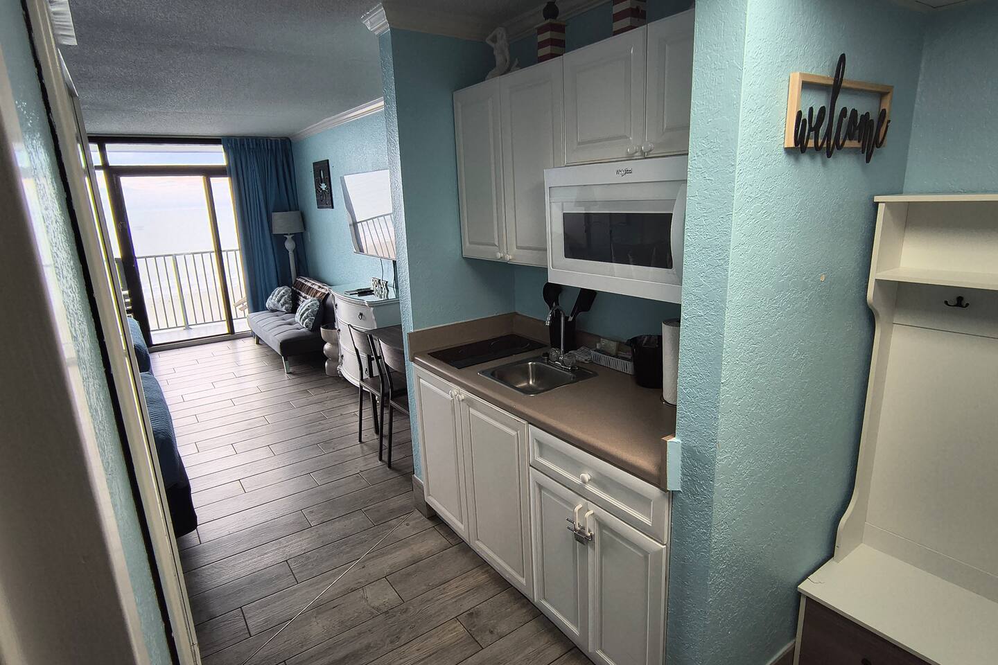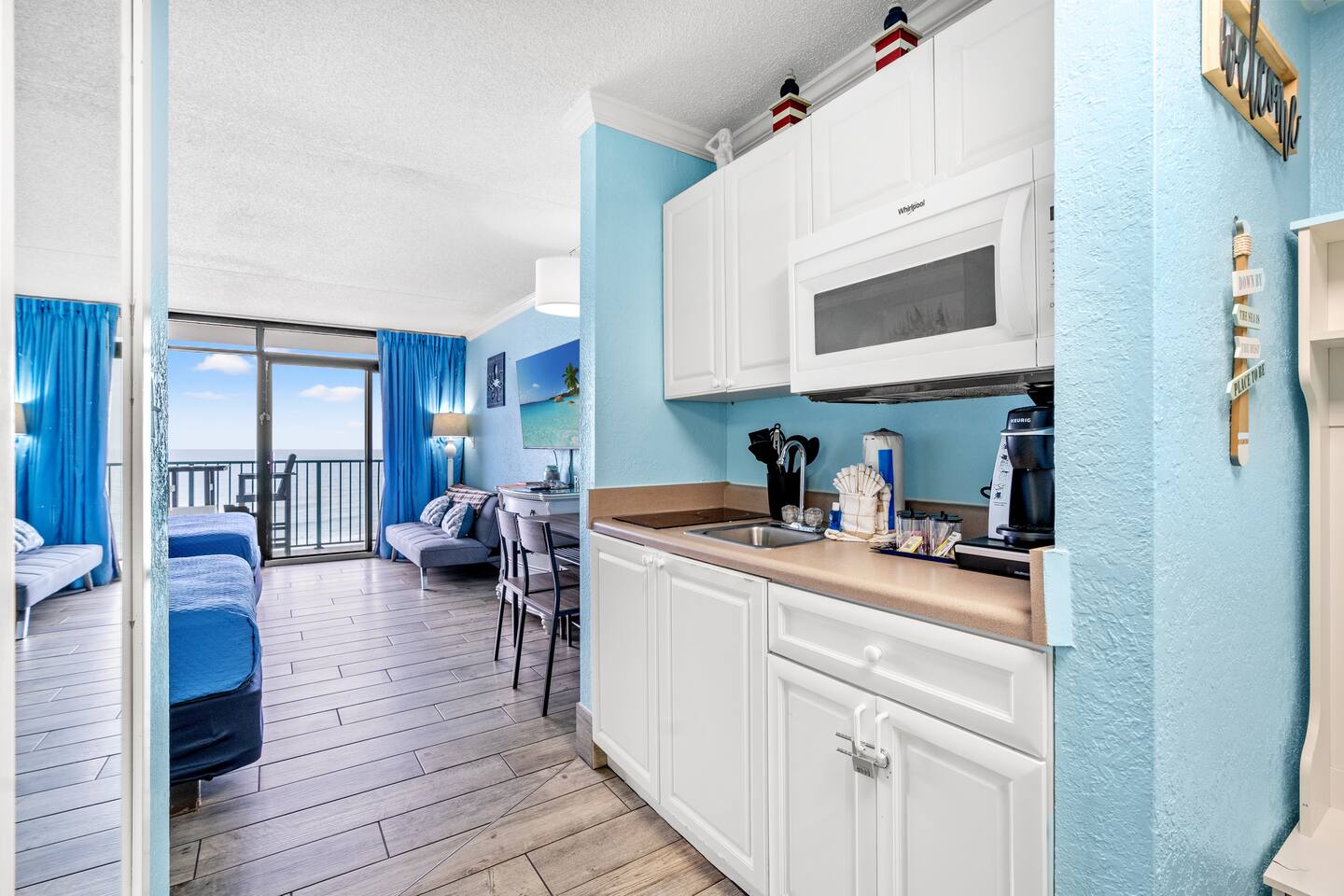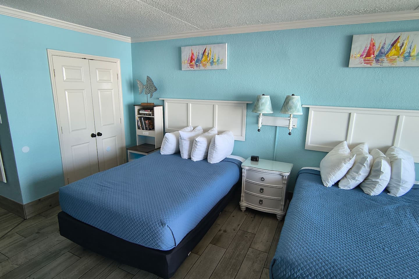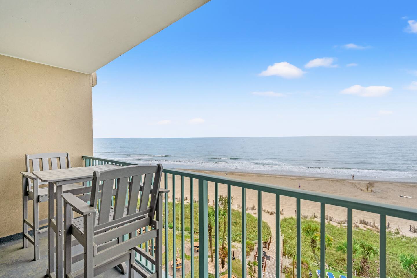 Wake up to ocean views at Sand Dunes Resort! This cozy studio features a private balcony, two full beds, resort pools, lazy river, beach access, and free parking—perfect for couples or small families seeking a relaxing Myrtle Beach getaway.
