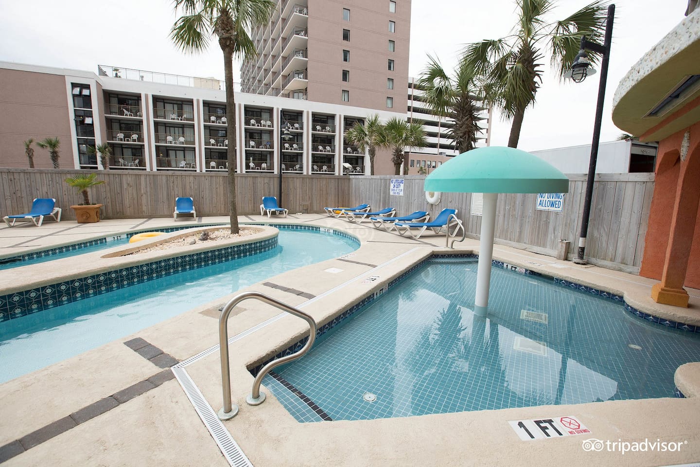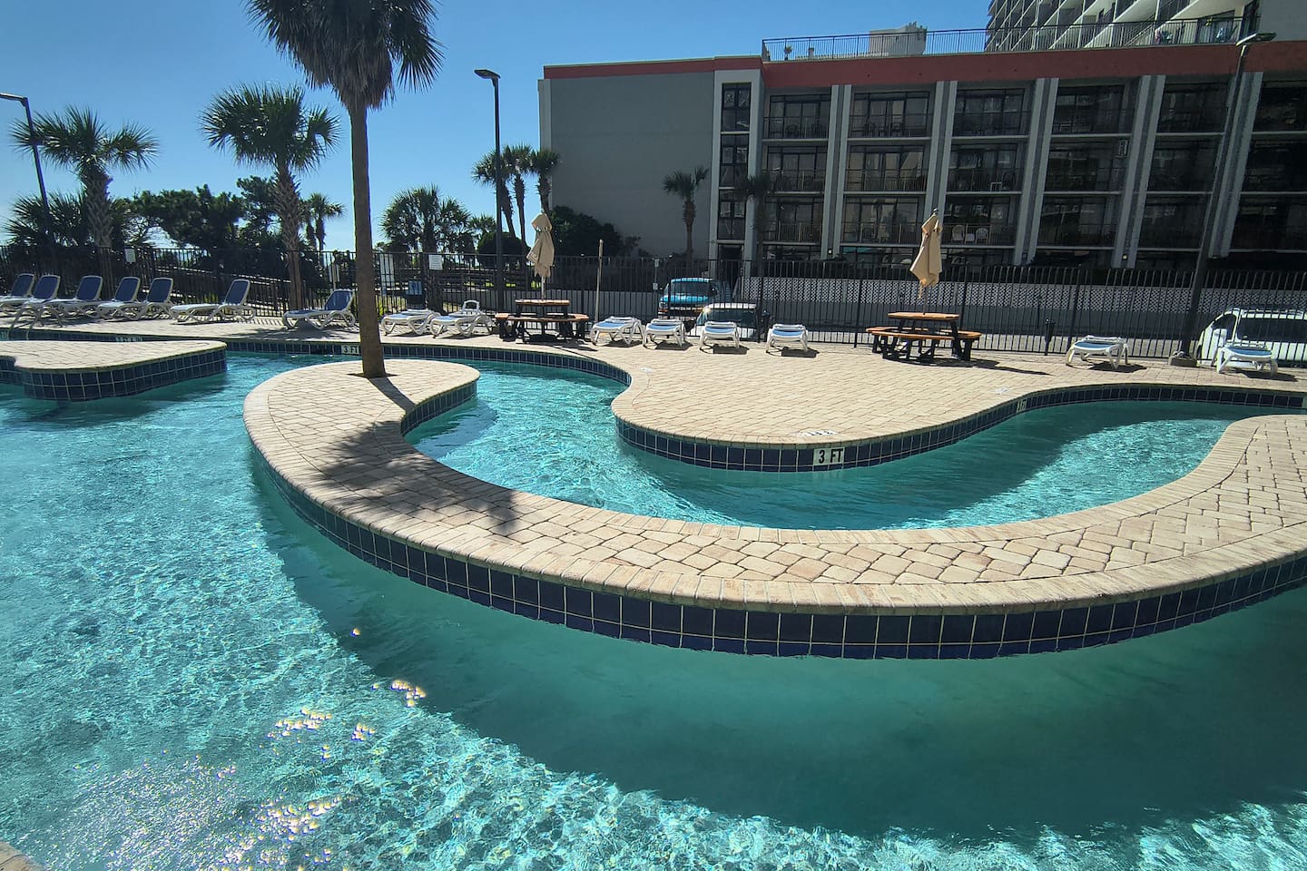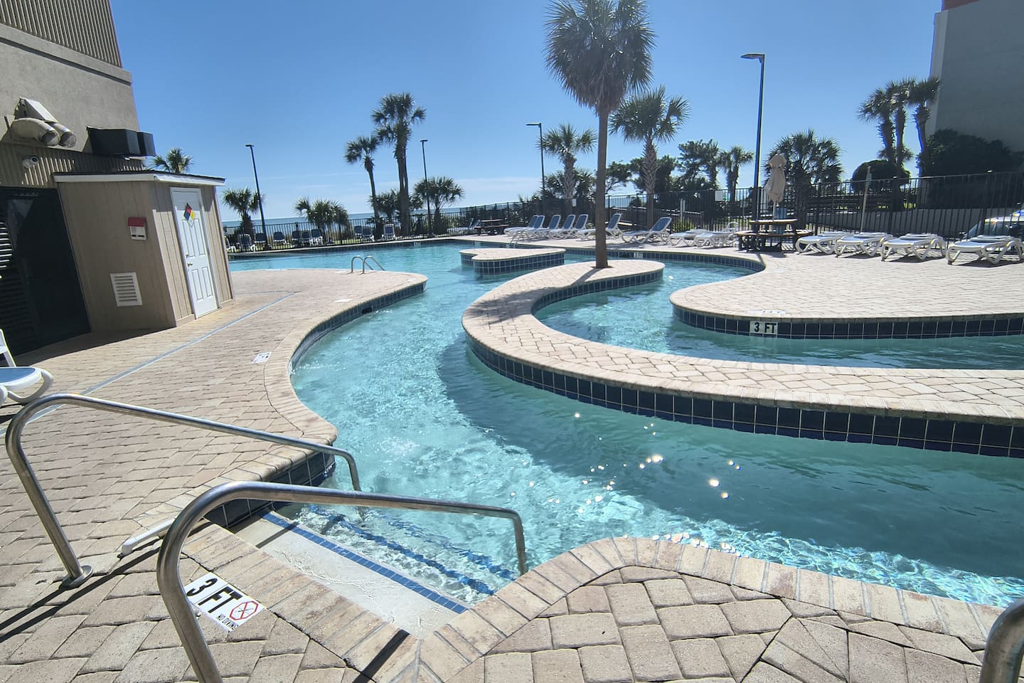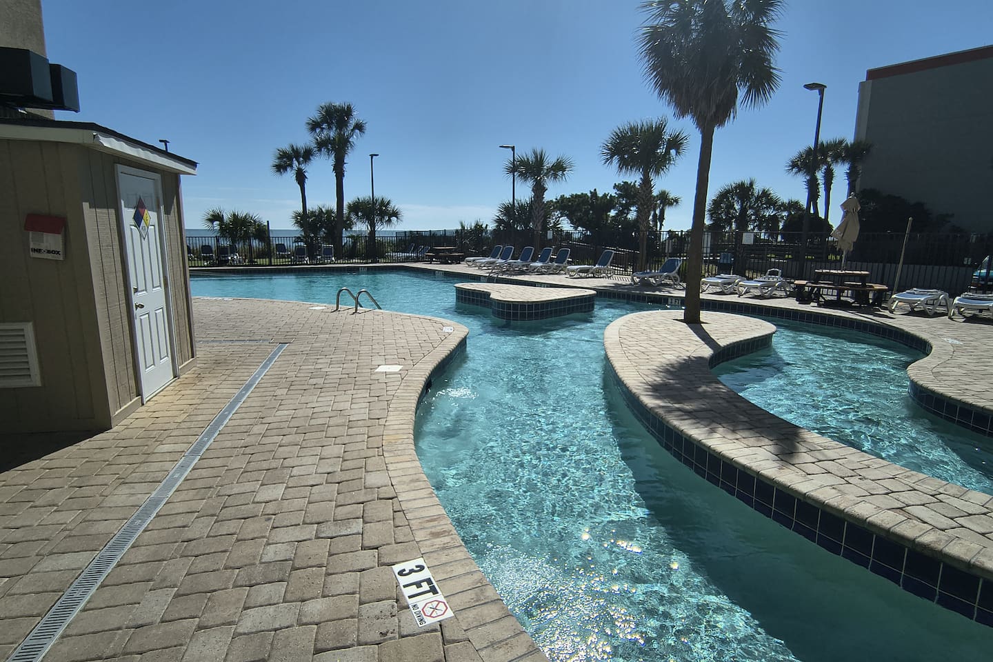 🏖️ Resort Amenities 👉 Direct beach access 👉 Outdoor pool & lazy river (8AM–10PM) 👉 Picnic tables & loungers 👉 Parking garage included