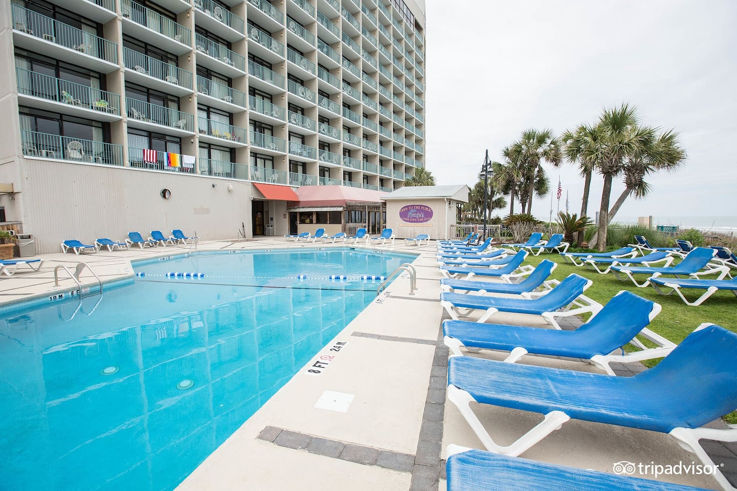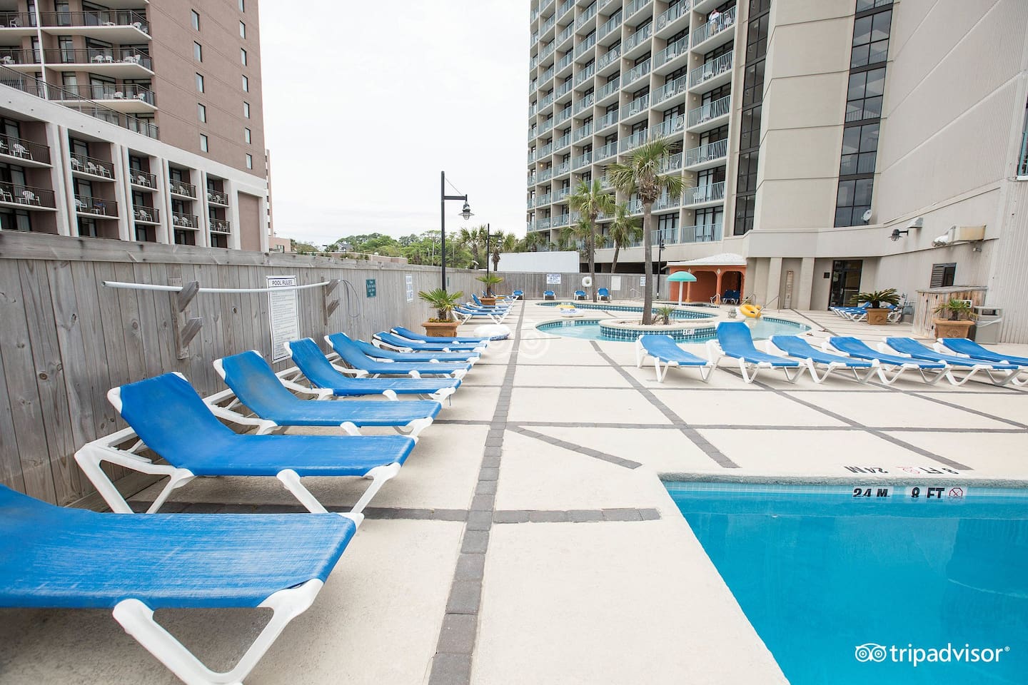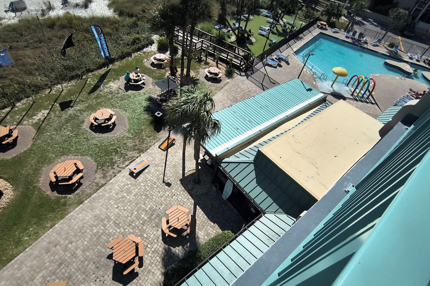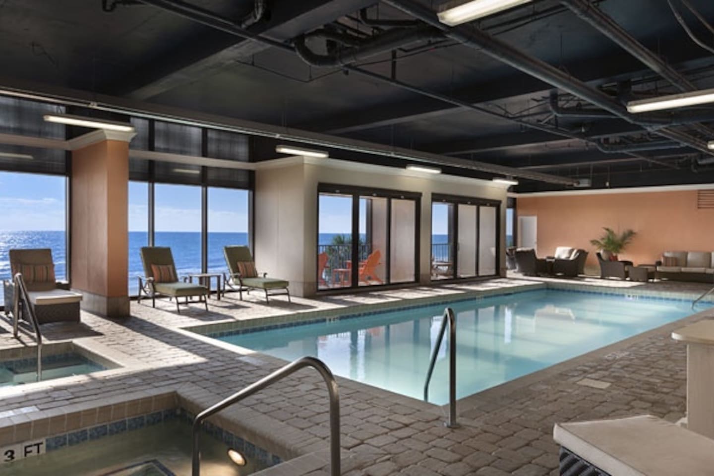 🏖️ Resort Amenities 👉 Direct beach access 👉 Outdoor pool & lazy river (8AM–10PM) 👉 Picnic tables & loungers 👉 Parking garage included