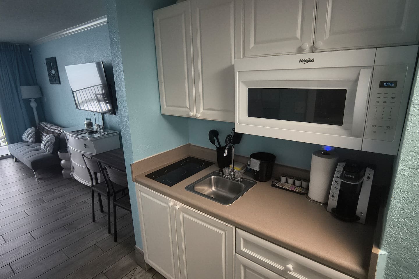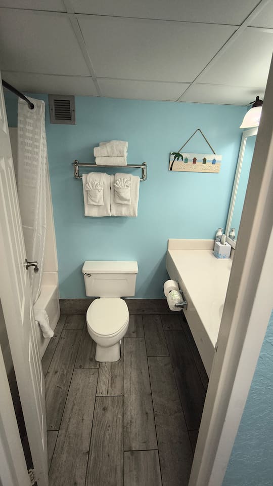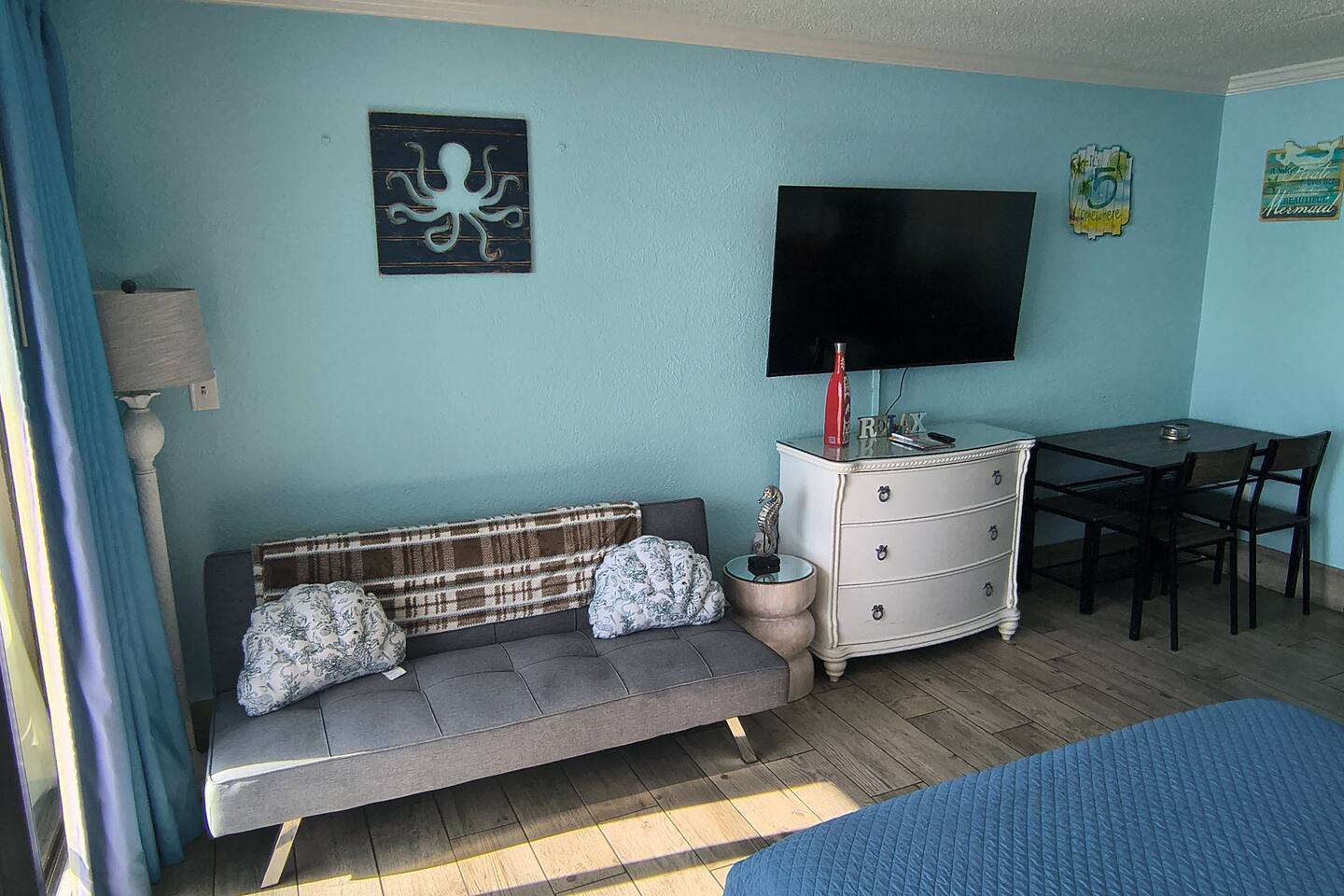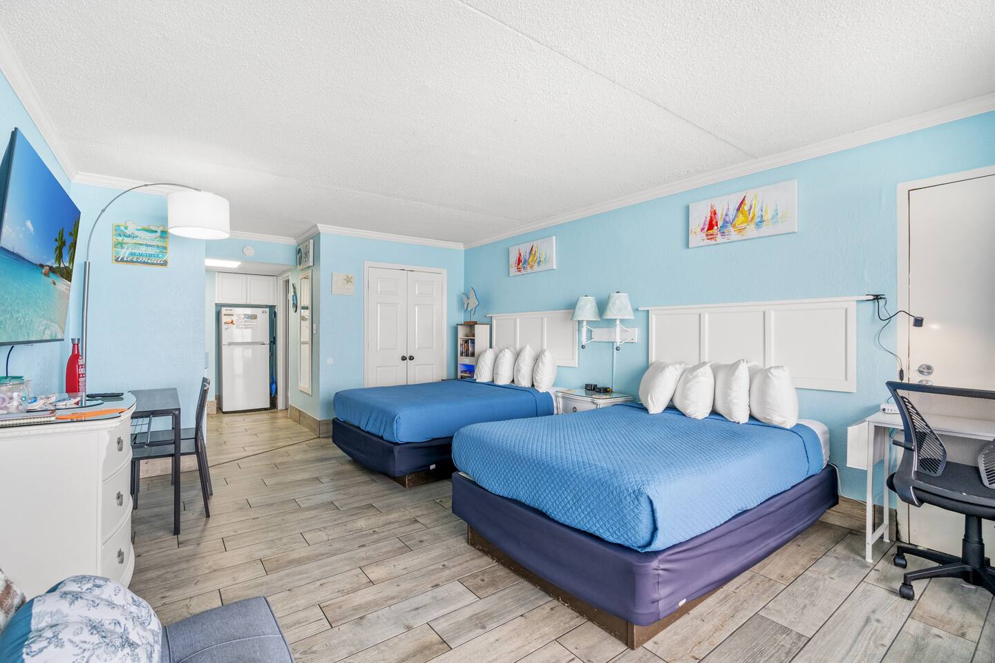 Welcome to your ocean-view escape at Sand Dunes Resort, where beach days and relaxing nights come easy. This thoughtfully stocked studio is ideal for young couples or small families looking for comfort, convenience, and resort-style amenities—just steps from the sand. 🌊 The Space 👉 Studio condo with 2 full beds + futon 👉 Private balcony with ocean view – perfect for morning coffee or sunset vibes 👉 1 full bathroom 👉 55” Smart TV with cable (guests log into their own streaming apps) 👉 Fast Wi-Fi for work or streaming