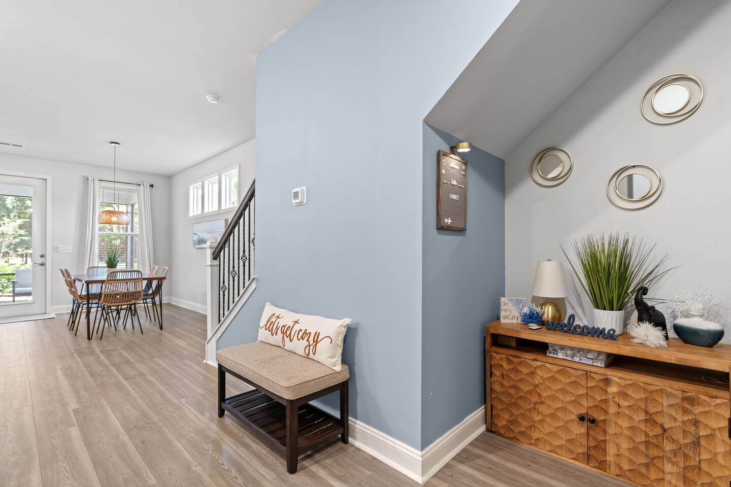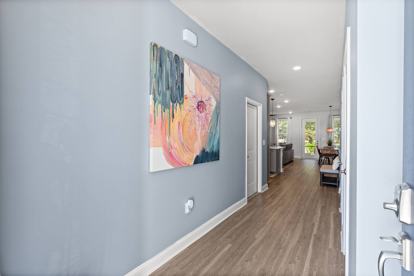 ✨ Highlights • 🛏 Sleeps up to 10 guests comfortably • 🌅 3 floors of living space — over 2,100 sq ft • 🍳 Fully equipped kitchen with modern appliances • 🧺 Washer & dryer for your convenience • 🌐 Fast Wi-Fi • ☀️ Screened-in porch + outdoor sitting area • 🚗 Free parking beside the house (no blocking driveway) • ❄️ Central air conditioning • 📺 Smart TVs for streaming your favorite shows • 🏖 Barefoot Landing, Alabama Theatre, and top restaurants just minutes away! • 🚗 Golf Carts: Enjoy convenient golf cart rentals from a trusted local dealer, delivered right to the property for your stay! 🏡 Neighborhood Located in a serene community on Double Eagle Way, you’ll be close to: • 🏖 Barefoot Landing Boardwalk (5 minutes) • 🛍 Tanger Outlets (10 minutes) • 🍕 Benito’s Brick Oven Pizza & Pasta (local favorite!) • ⛳ Barefoot Golf Courses • 🍹 Restaurants, bars, and family attractions Keyless self-check-in for a seamless, hassle-free arrival. You’ll enjoy private, secure access to the property through our keypad smart lock. Your unique entry code will be sent before check-in, allowing you to arrive anytime after 4 PM without needing to meet anyone or pick up keys. Enjoy full access to the home, including the living area, kitchen, bedrooms, bathrooms, and private balcony. Parking information and building access instructions will also be provided prior to your arrival for a smooth check-in experience.