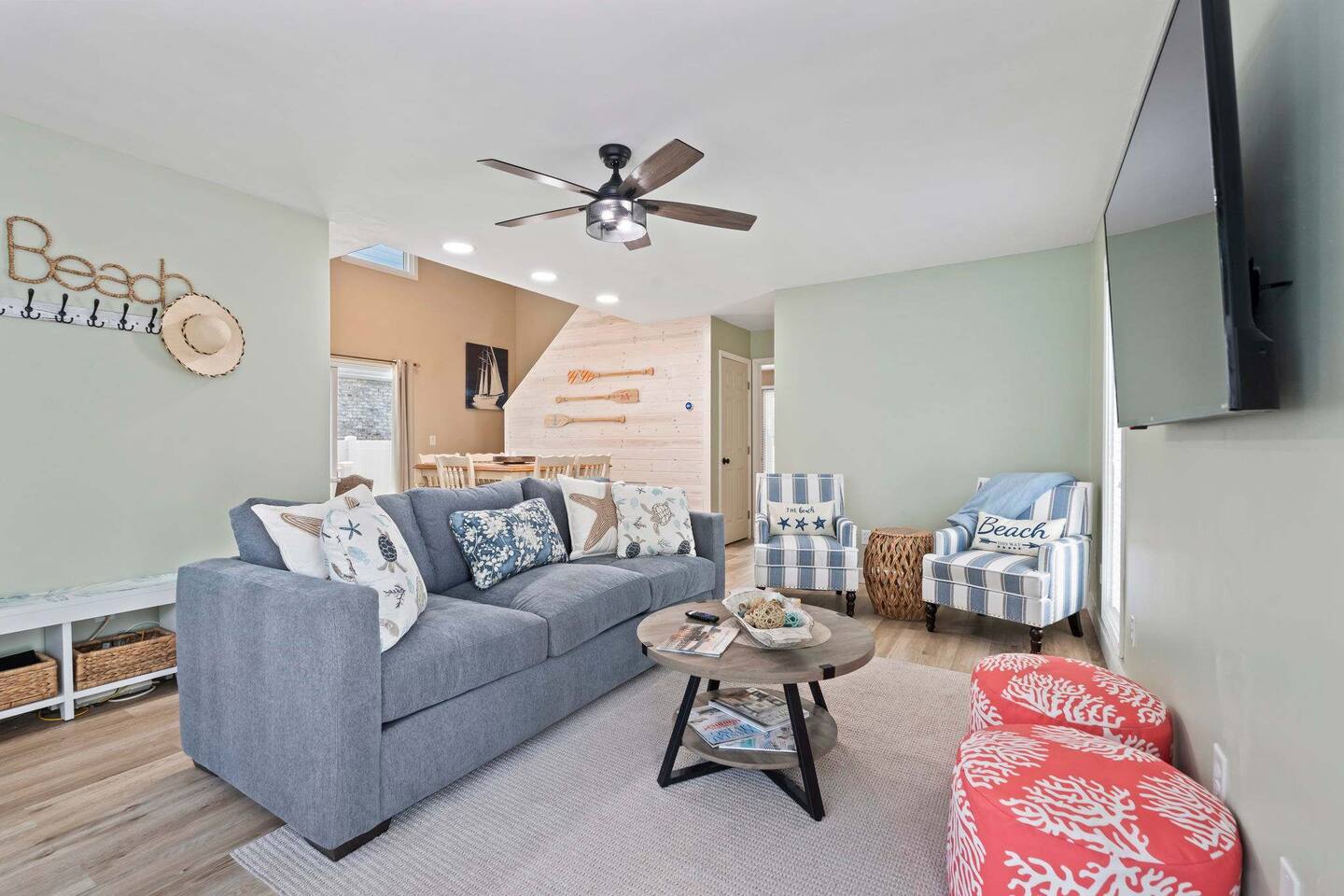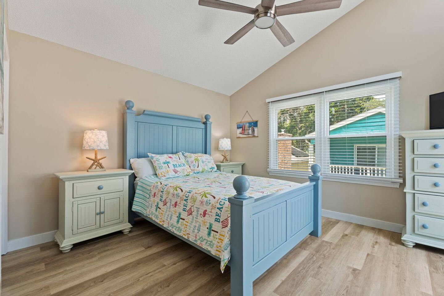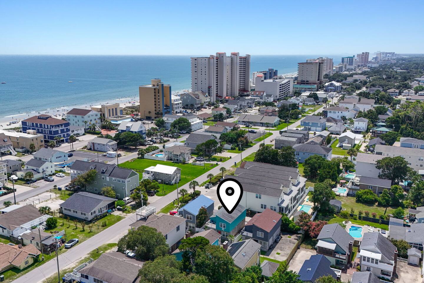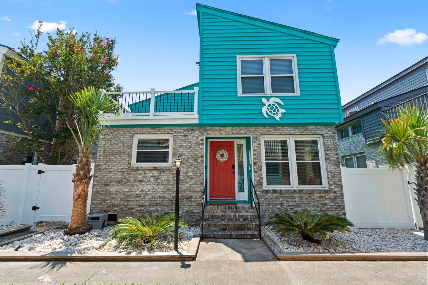 ☀️ Highlights: • Less than a 2-minute walk to the beach • 3 spacious bedrooms (2 Queens, 2 Twin Bunks) • 2 full bathrooms (1 en suite on the first floor) • Fully equipped kitchen with coffee bar, beverage fridge & Margaritaville frozen drink maker • High-speed WiFi + Roku Smart TVs in every room • Outdoor grill, large deck with dining & lounge areas • 2nd-floor deck perfect for morning coffee or sunset views • Outdoor shower • Kids’ play area and family games • Owner-managed for personalized service • Close to festivals, sports tournaments, shopping, dining & 82 golf courses within 20 miles! ⛳ 🍳 Kitchen & Dining Cook up your favorites in a fully stocked kitchen featuring stainless appliances, cookware, dinnerware, and everything you need for family meals. Choose to dine indoors (seating for 8) or enjoy the salty breeze outside on the deck (seating for 6). 🛏 Sleeping Arrangements • Bedroom 1: Queen bed, Smart TV, en suite bathroom, laundry area • Bedroom 2: Queen bed, walk-in closet, private deck • Bedroom 3: Two twin bunk beds + playroom with Smart TV, games, sofa, and cozy Papasan chair 🎮 Entertainment & Relaxation Wind down with Roku Smart TVs in every room, play a game of cornhole, or gather for family game night. There’s something for everyone — from streaming movies to sipping cocktails under the stars.