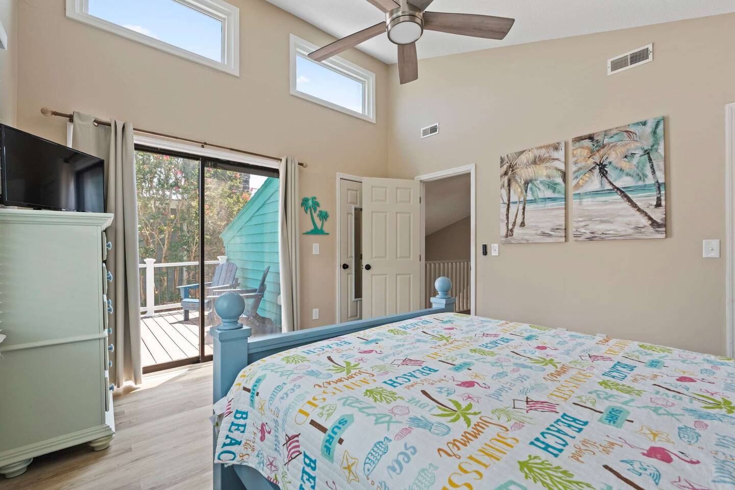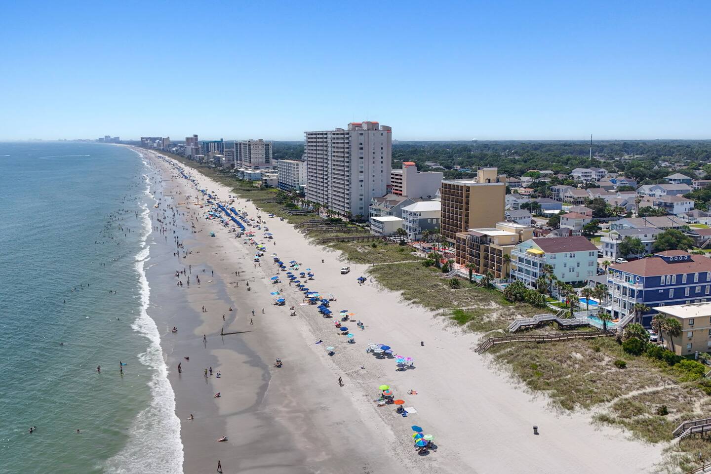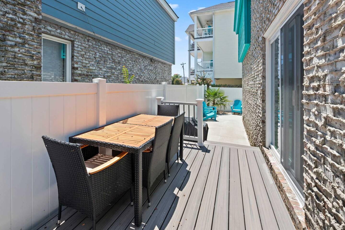 ☀️ Highlights: • Less than a 2-minute walk to the beach • 3 spacious bedrooms (2 Queens, 2 Twin Bunks) • 2 full bathrooms (1 en suite on the first floor) • Fully equipped kitchen with coffee bar, beverage fridge & Margaritaville frozen drink maker • High-speed WiFi + Roku Smart TVs in every room • Outdoor grill, large deck with dining & lounge areas • 2nd-floor deck perfect for morning coffee or sunset views • Outdoor shower • Kids’ play area and family games • Owner-managed for personalized service • Close to festivals, sports tournaments, shopping, dining & 82 golf courses within 20 miles! ⛳ 🍳 Kitchen & Dining Cook up your favorites in a fully stocked kitchen featuring stainless appliances, cookware, dinnerware, and everything you need for family meals. Choose to dine indoors (seating for 8) or enjoy the salty breeze outside on the deck (seating for 6). 🛏 Sleeping Arrangements • Bedroom 1: Queen bed, Smart TV, en suite bathroom, laundry area • Bedroom 2: Queen bed, walk-in closet, private deck • Bedroom 3: Two twin bunk beds + playroom with Smart TV, games, sofa, and cozy Papasan chair 🎮 Entertainment & Relaxation Wind down with Roku Smart TVs in every room, play a game of cornhole, or gather for family game night. There’s something for everyone — from streaming movies to sipping cocktails under the stars.