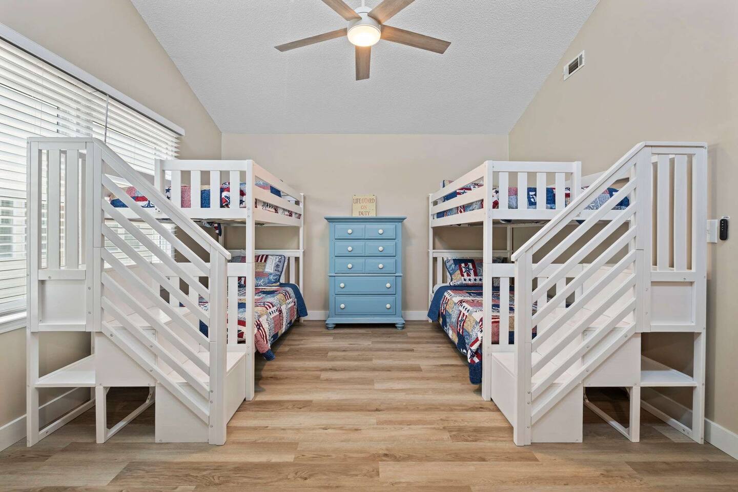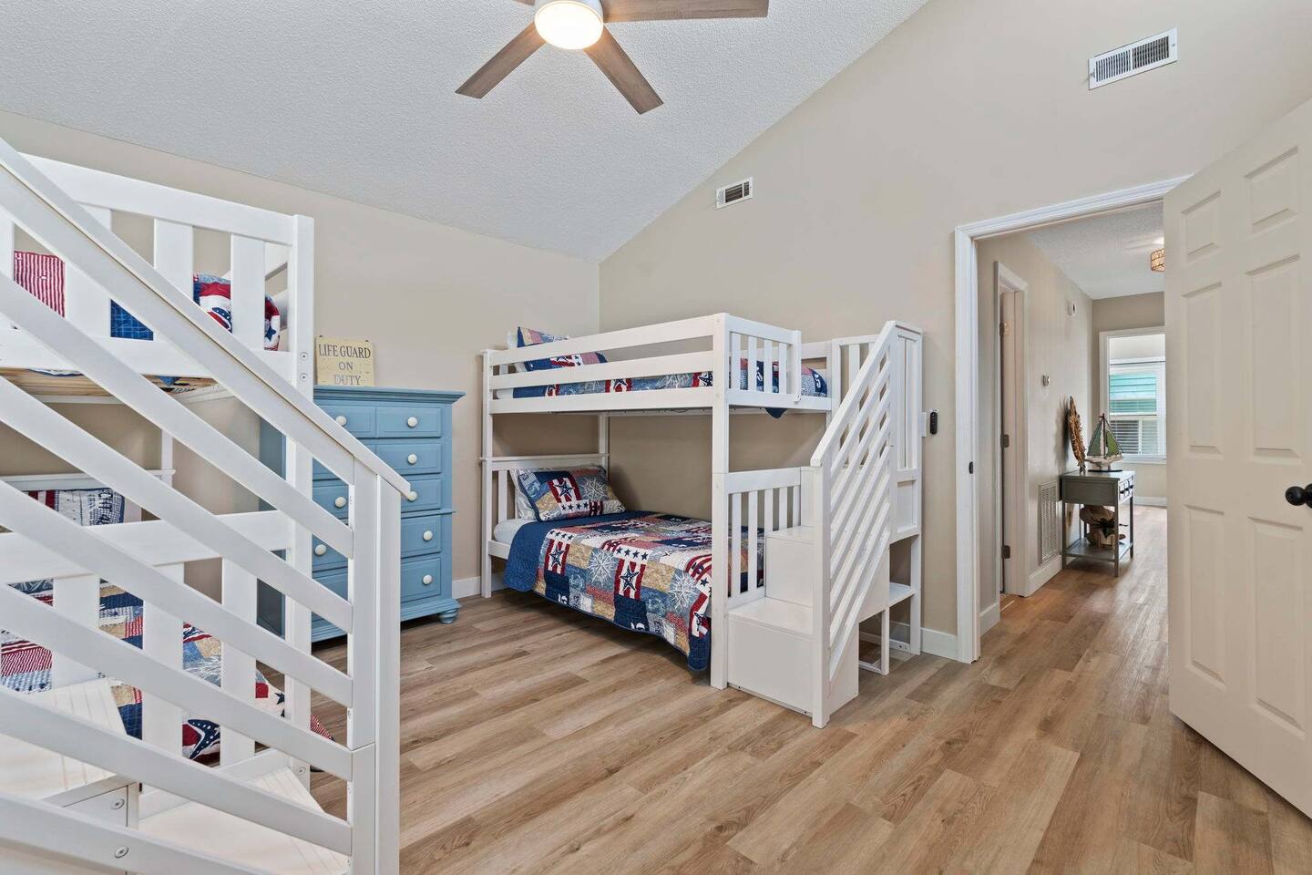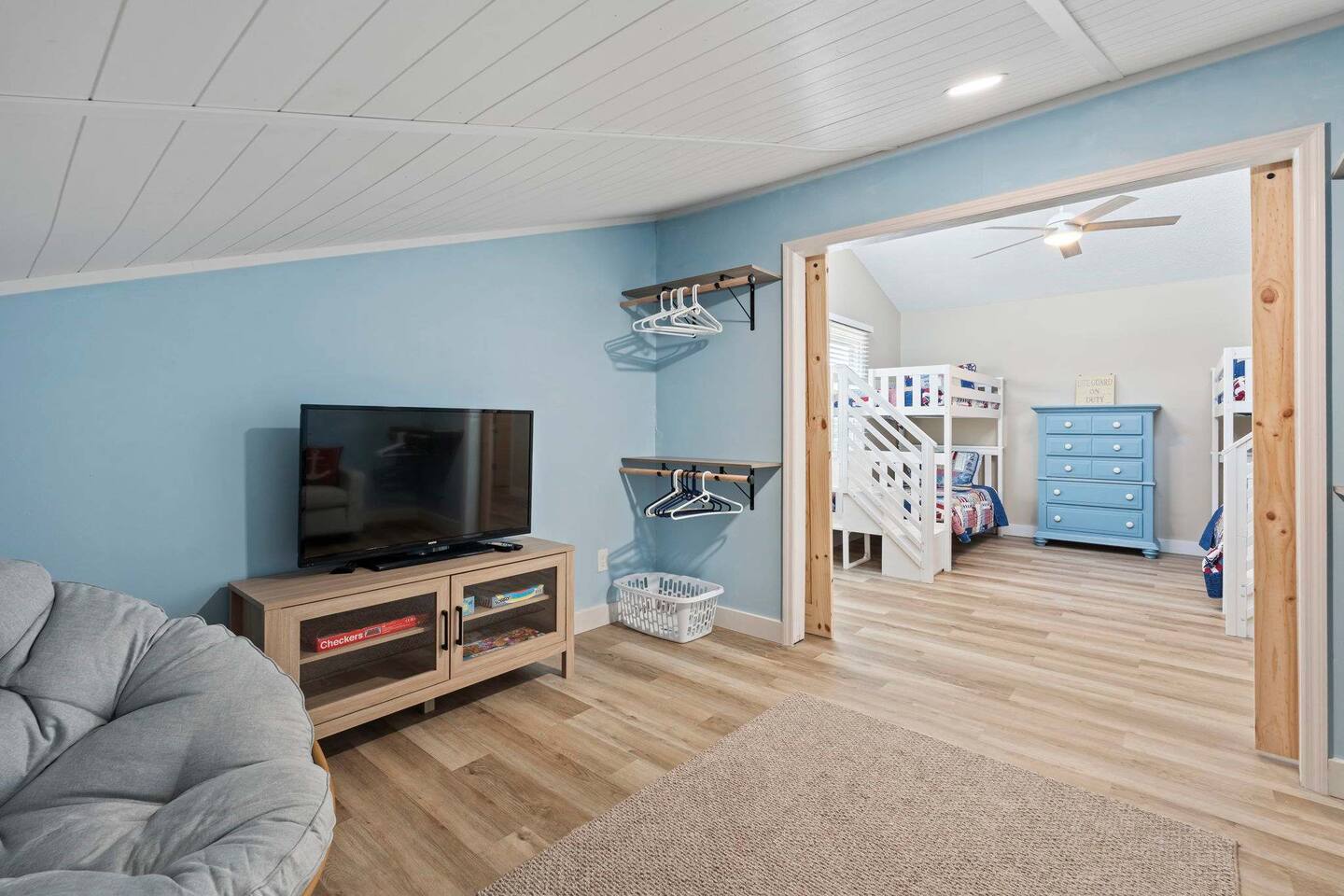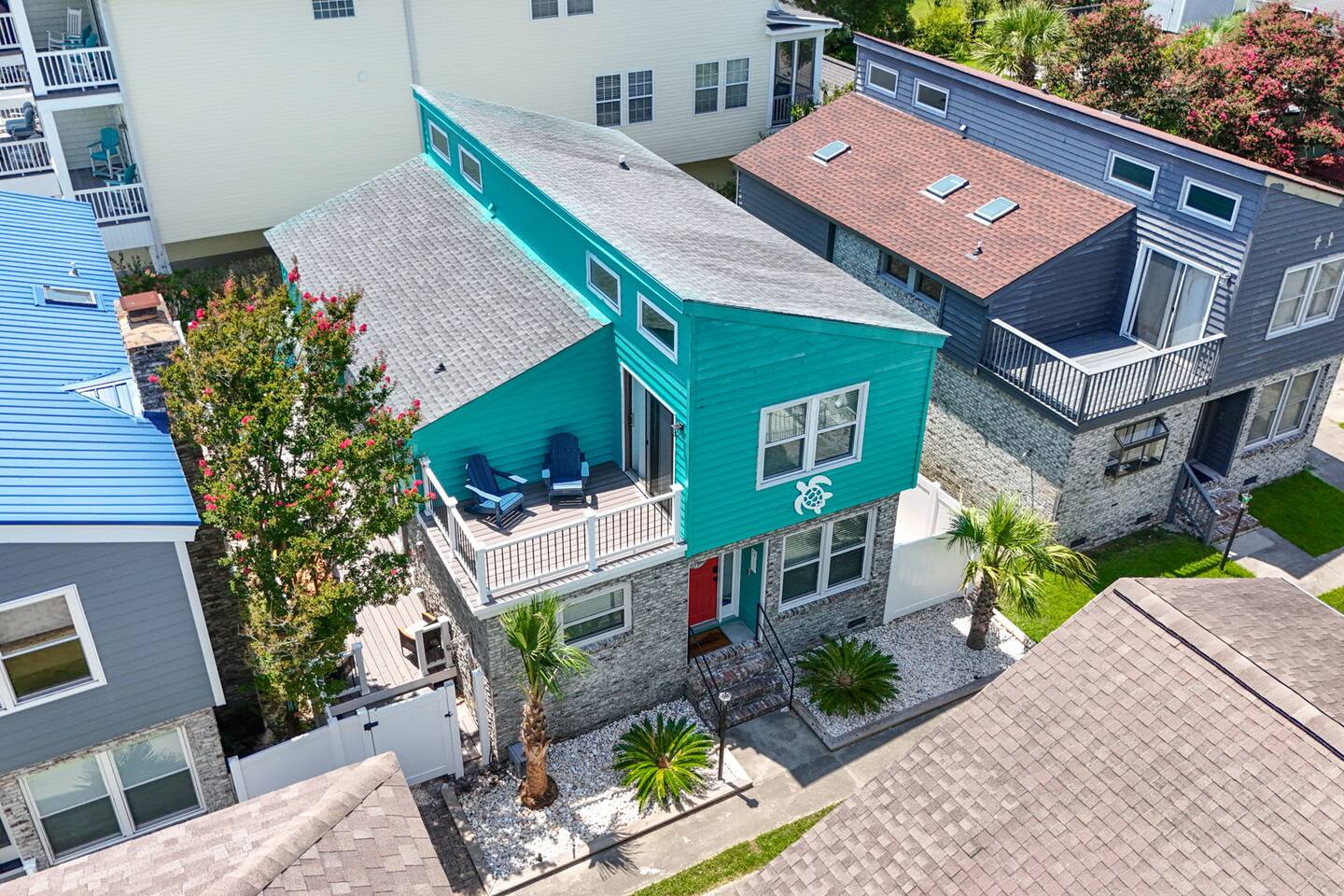☀️ Highlights: • Less than a 2-minute walk to the beach • 3 spacious bedrooms (2 Queens, 2 Twin Bunks) • 2 full bathrooms (1 en suite on the first floor) • Fully equipped kitchen with coffee bar, beverage fridge & Margaritaville frozen drink maker • High-speed WiFi + Roku Smart TVs in every room • Outdoor grill, large deck with dining & lounge areas • 2nd-floor deck perfect for morning coffee or sunset views • Outdoor shower • Kids’ play area and family games • Owner-managed for personalized service • Close to festivals, sports tournaments, shopping, dining & 82 golf courses within 20 miles! ⛳ 🍳 Kitchen & Dining Cook up your favorites in a fully stocked kitchen featuring stainless appliances, cookware, dinnerware, and everything you need for family meals. Choose to dine indoors (seating for 8) or enjoy the salty breeze outside on the deck (seating for 6). 🛏 Sleeping Arrangements • Bedroom 1: Queen bed, Smart TV, en suite bathroom, laundry area • Bedroom 2: Queen bed, walk-in closet, private deck • Bedroom 3: Two twin bunk beds + playroom with Smart TV, games, sofa, and cozy Papasan chair 🎮 Entertainment & Relaxation Wind down with Roku Smart TVs in every room, play a game of cornhole, or gather for family game night. There’s something for everyone — from streaming movies to sipping cocktails under the stars.