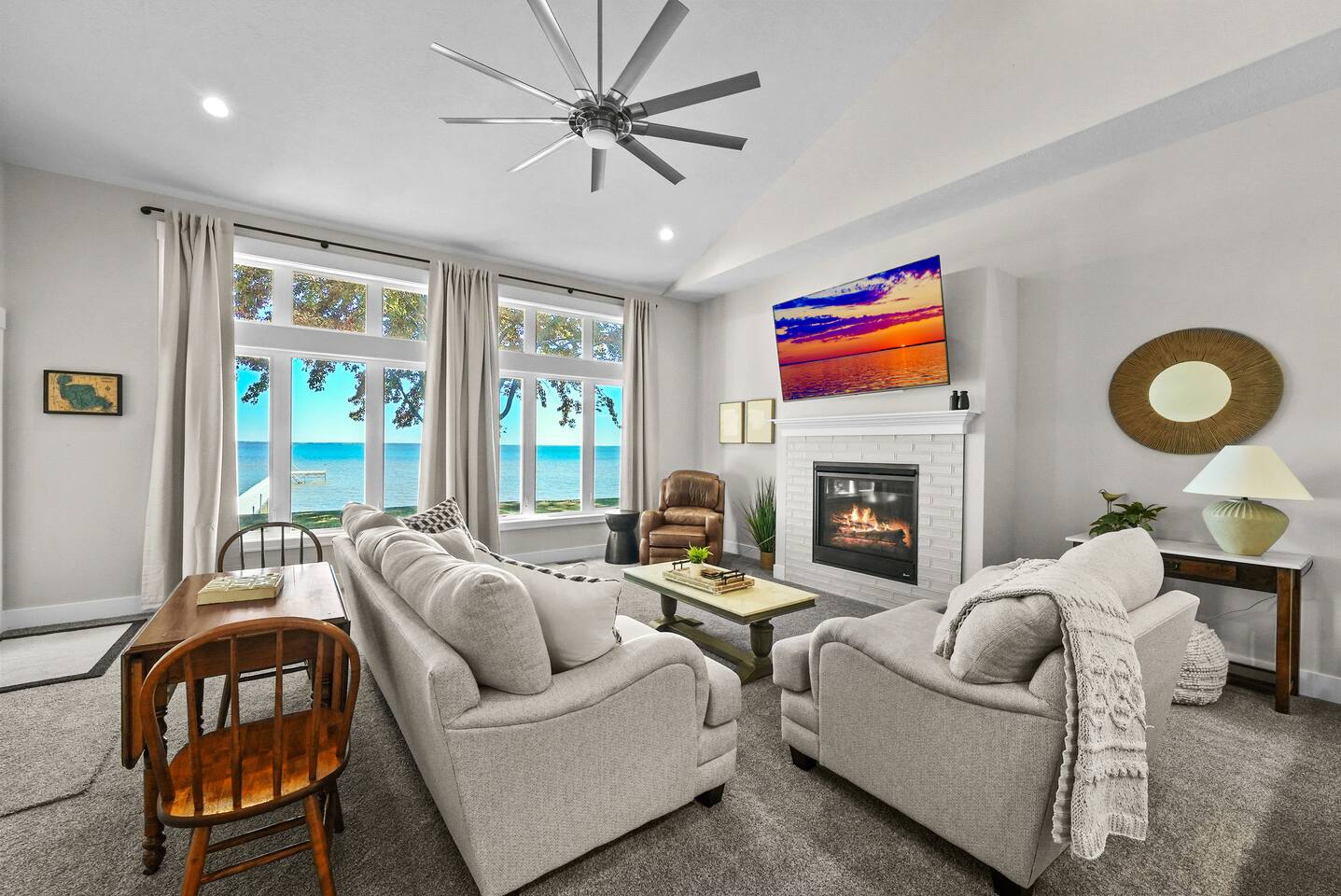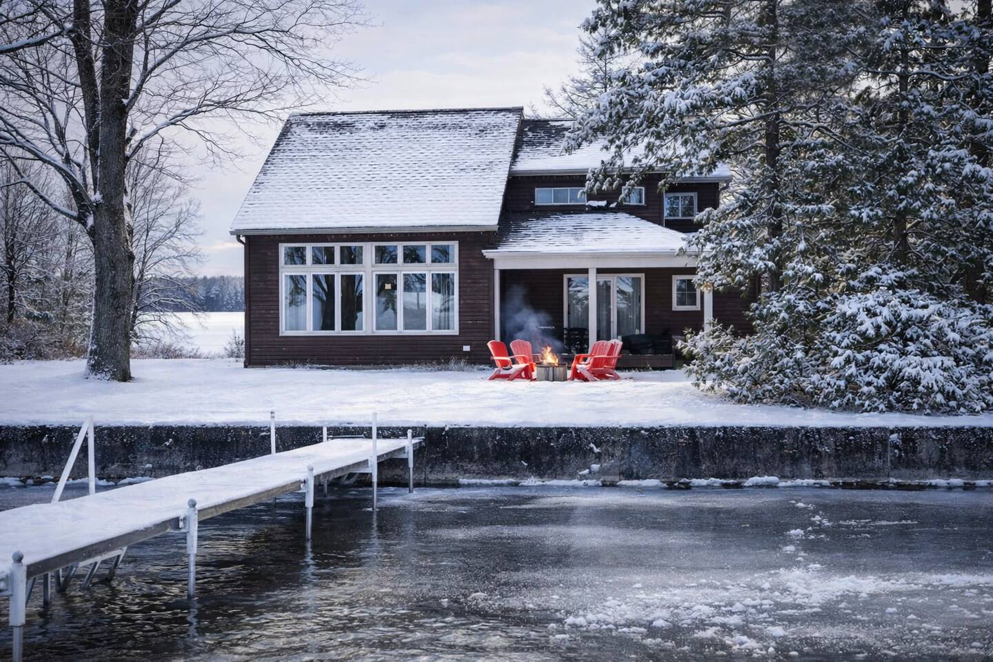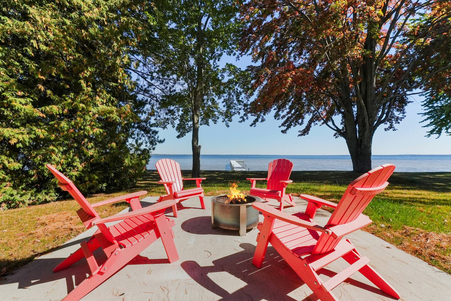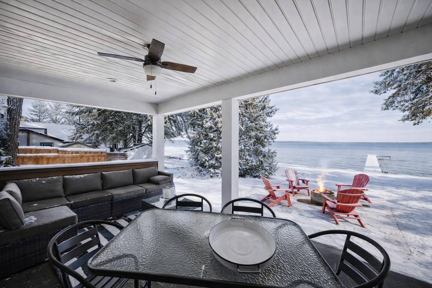 Escape to this spacious four-bedroom home, perfect for up to 12 guests! With 120 feet of lakefront, enjoy a long dock with two water entry points. Dive into fun with water toys and outdoor games in the spacious yard. Fire up the fire pit or grill for evening BBQs while soaking in stunning sunsets. Inside, find cozy spaces, TVs w/apps and indoor games for all ages. Experience year-round fun with summer water sports, winter ice fishing, and more. Create unforgettable memories at this getaway!