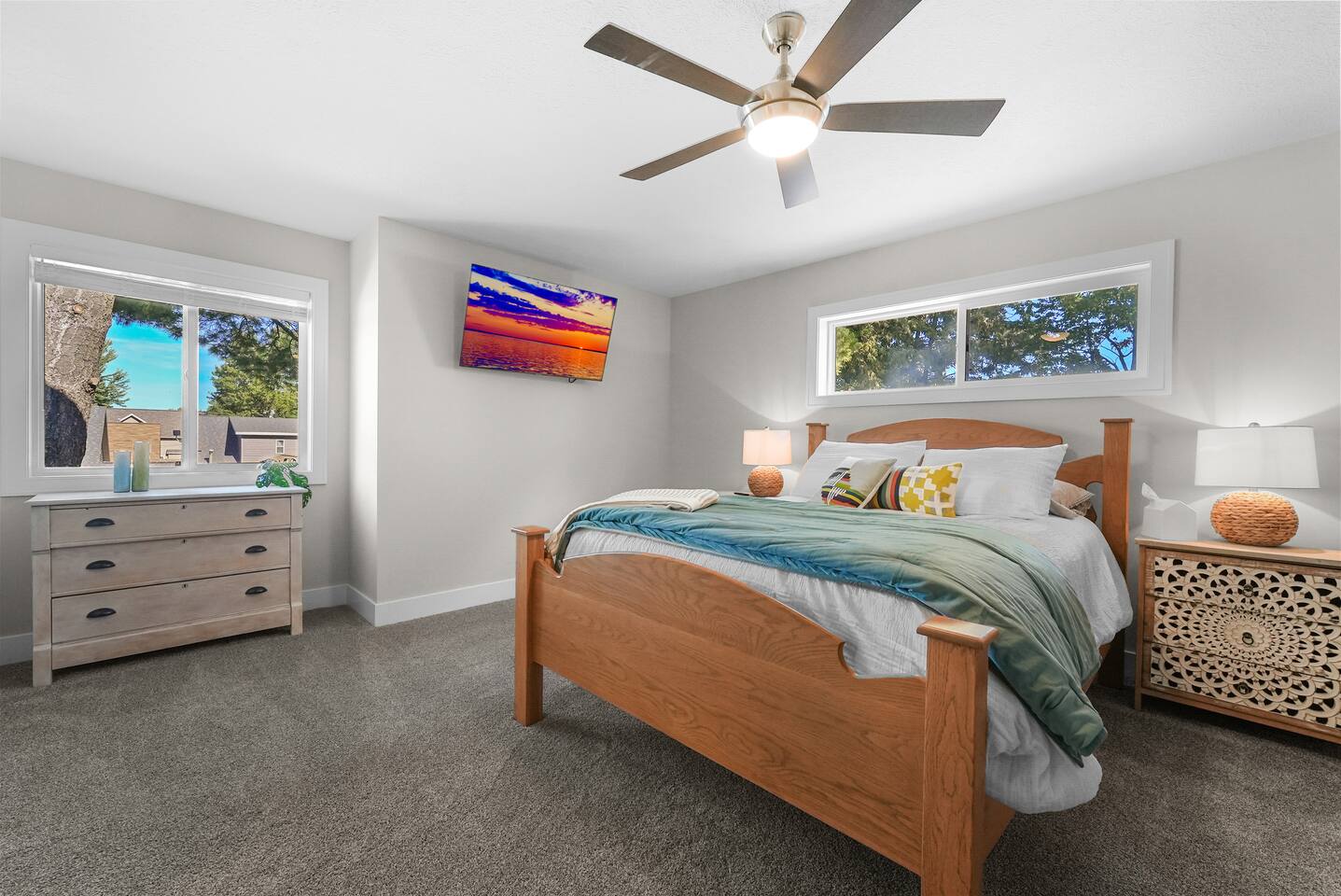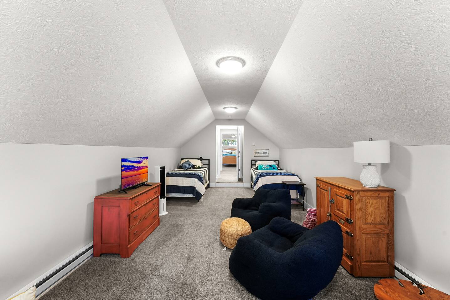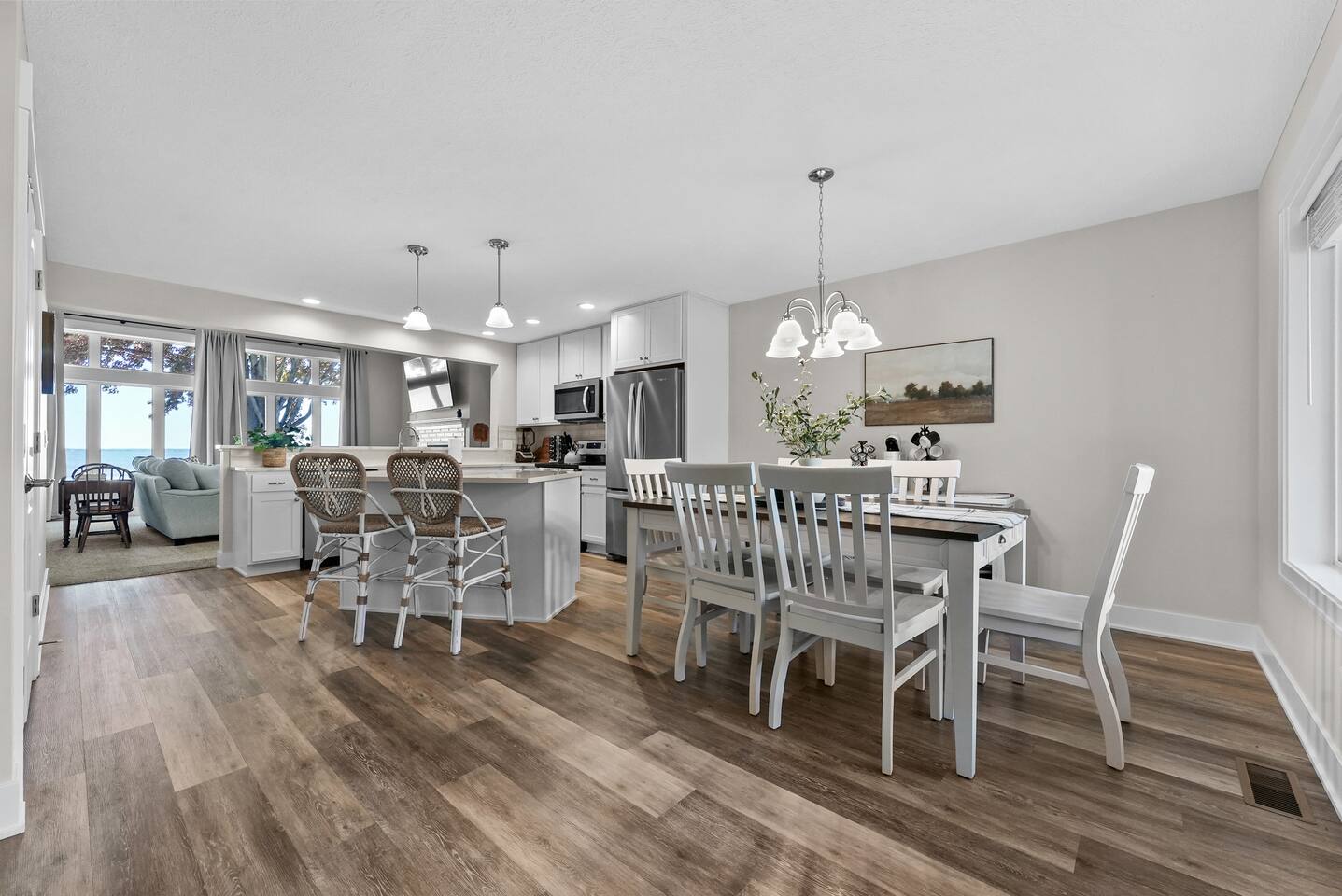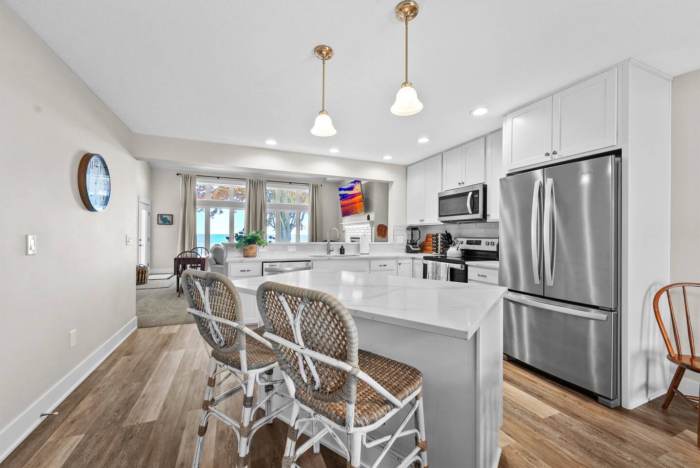 Escape to this spacious four-bedroom home, perfect for up to 12 guests! With 120 feet of lakefront, enjoy a long dock with two water entry points. Dive into fun with water toys and outdoor games in the spacious yard. Fire up the fire pit or grill for evening BBQs while soaking in stunning sunsets. Inside, find cozy spaces, TVs w/apps and indoor games for all ages. Experience year-round fun with summer water sports, winter ice fishing, and more. Create unforgettable memories at this getaway!